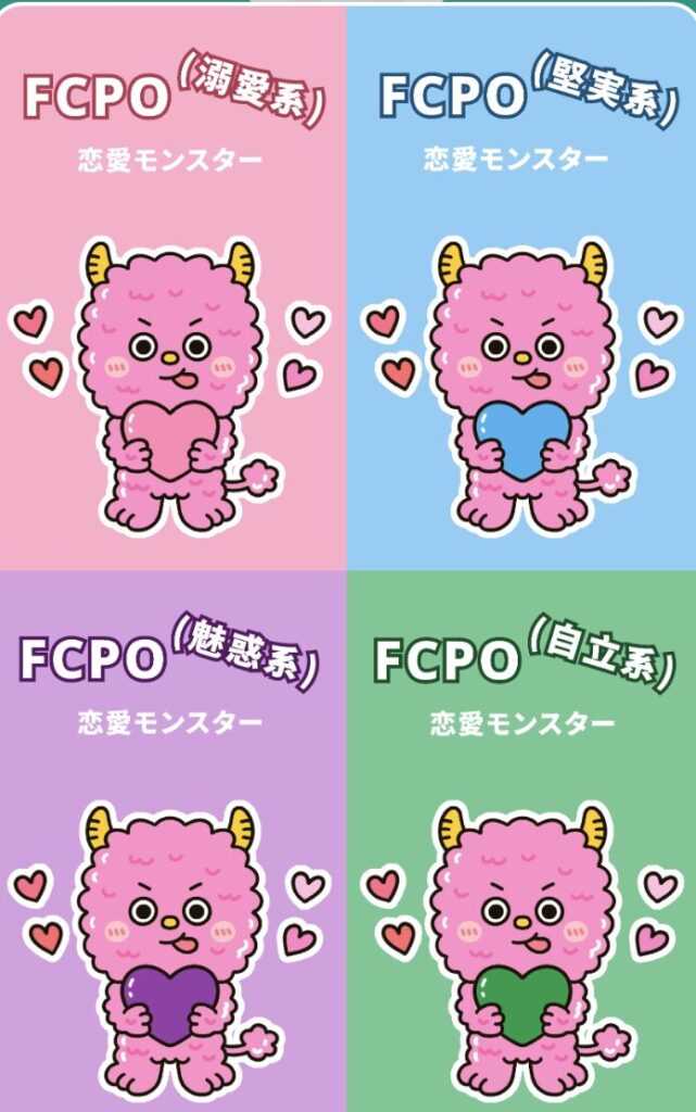 これら16種類の恋愛モンスターが持つ基本的な性格や特徴に、新しく加わった「溺愛系」「自立系」「堅実系」「魅惑系」などの恋愛の温度感がプラスされ、より詳細な64通りのキャラクターが完成します。