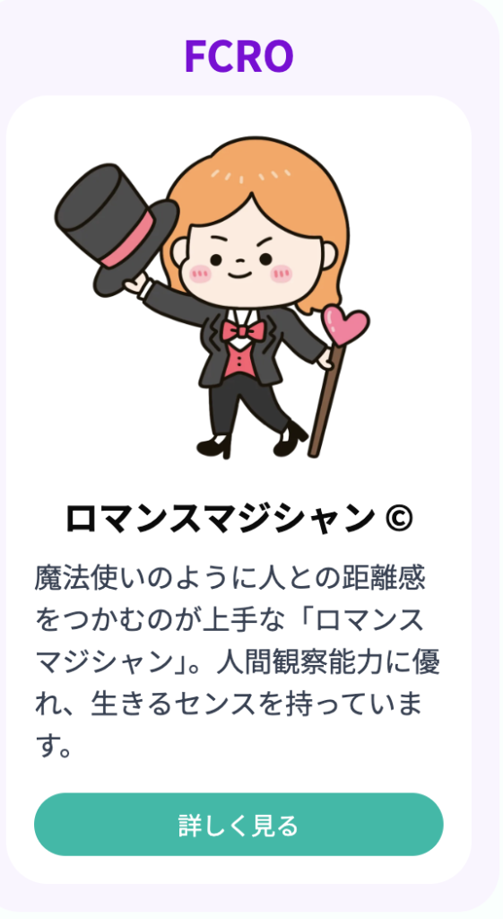 | INTP(論理学者) | FCRO(ロマンスマジシャン)/FARO(不思議生命体) |