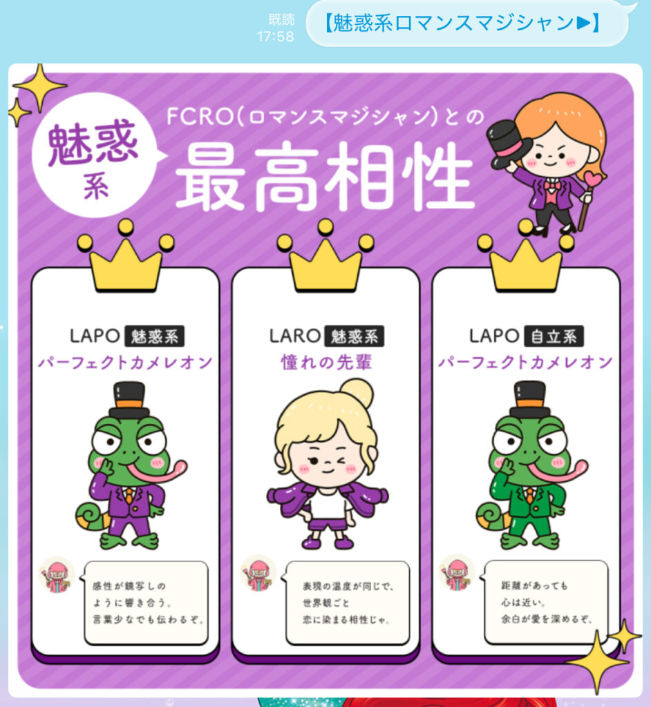 相性診断の結果は、従来の16キャラ名に「溺愛系」「堅実系」「魅惑系」「自立系」という4つの「系」が加わることで、より具体的に示されます。