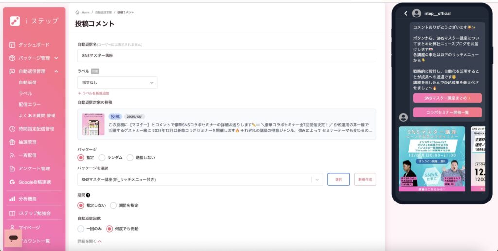 - 【保存版】Instagramで“自動DM返信”が主流へ。反応(エンゲージメント)率と売上を上げるならiステップ一択!