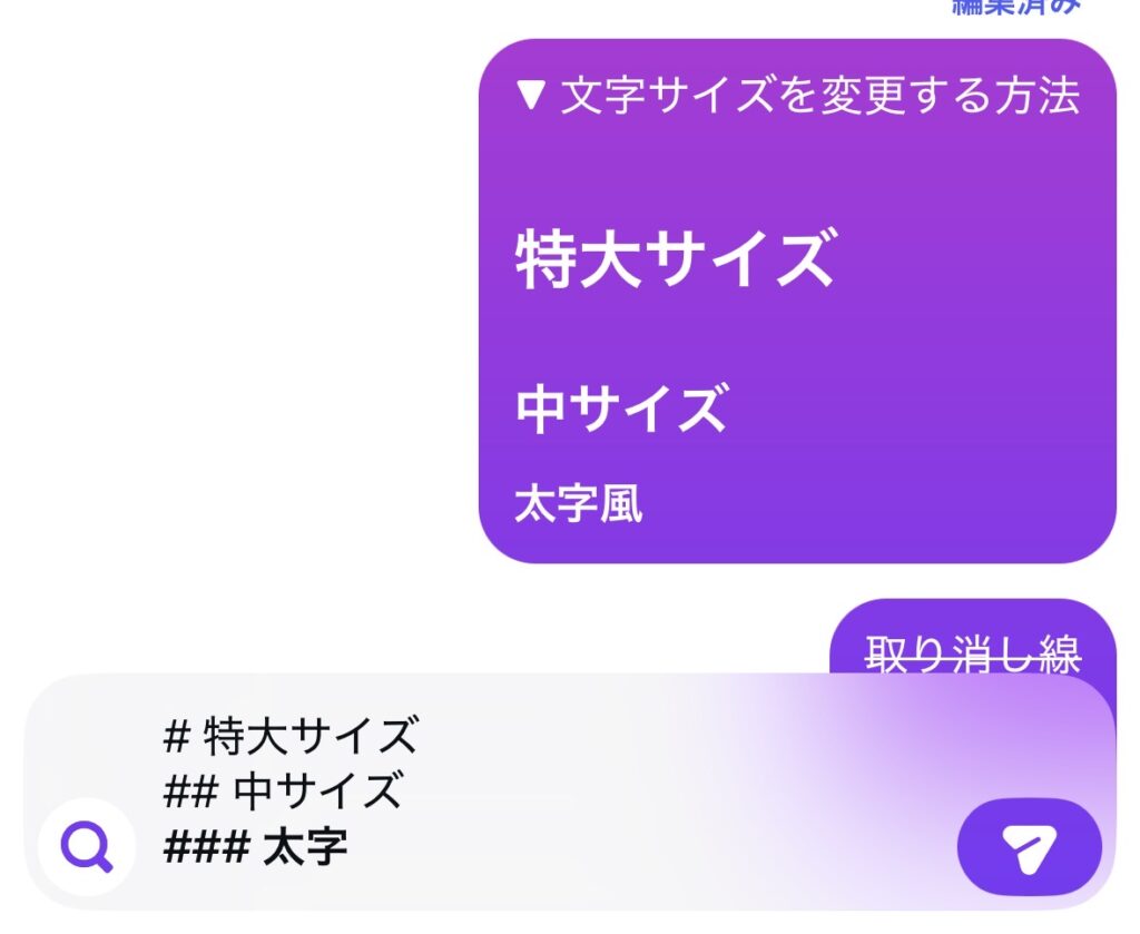 例えば、文字サイズを大きく変更したり、太字にしたり、取り消し線や斜体が可能になったりします!